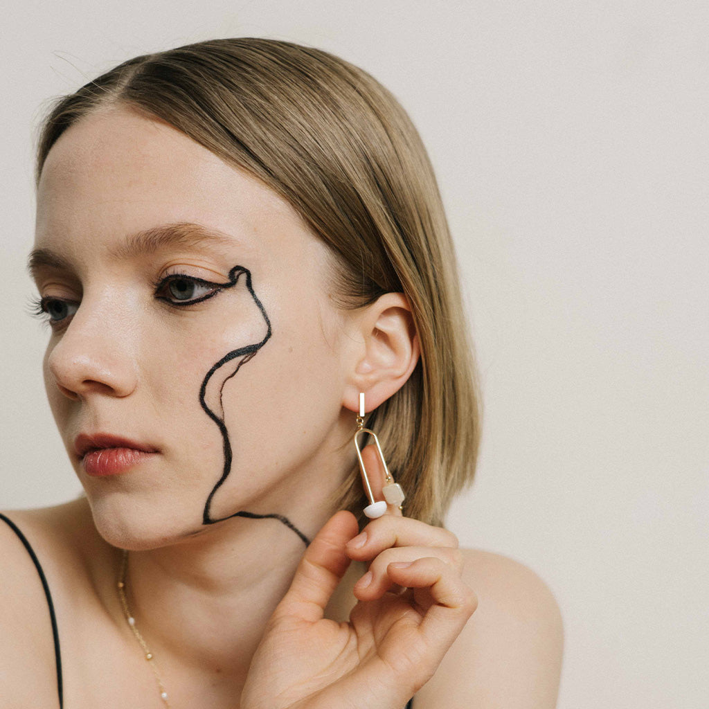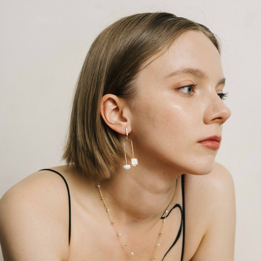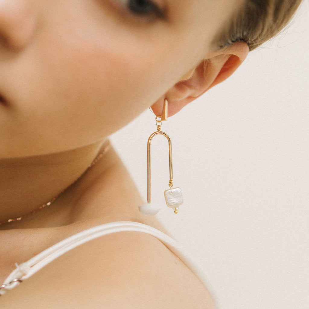平衡系列 Balance Series - 水泥珍珠平行耳環