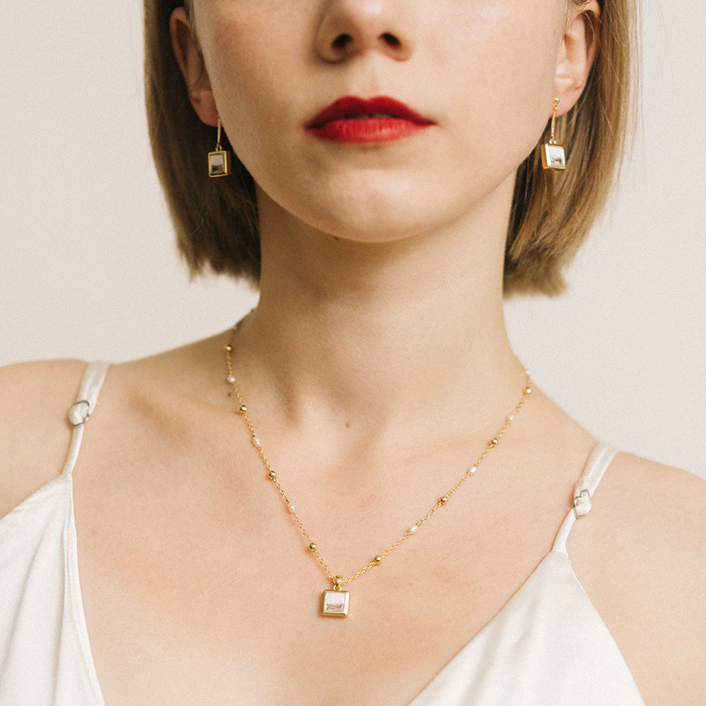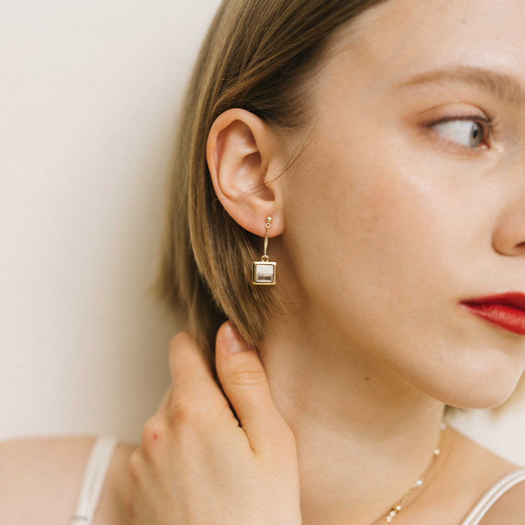 水晶系列 Crystal Series - 白晝方形水晶骨節耳環