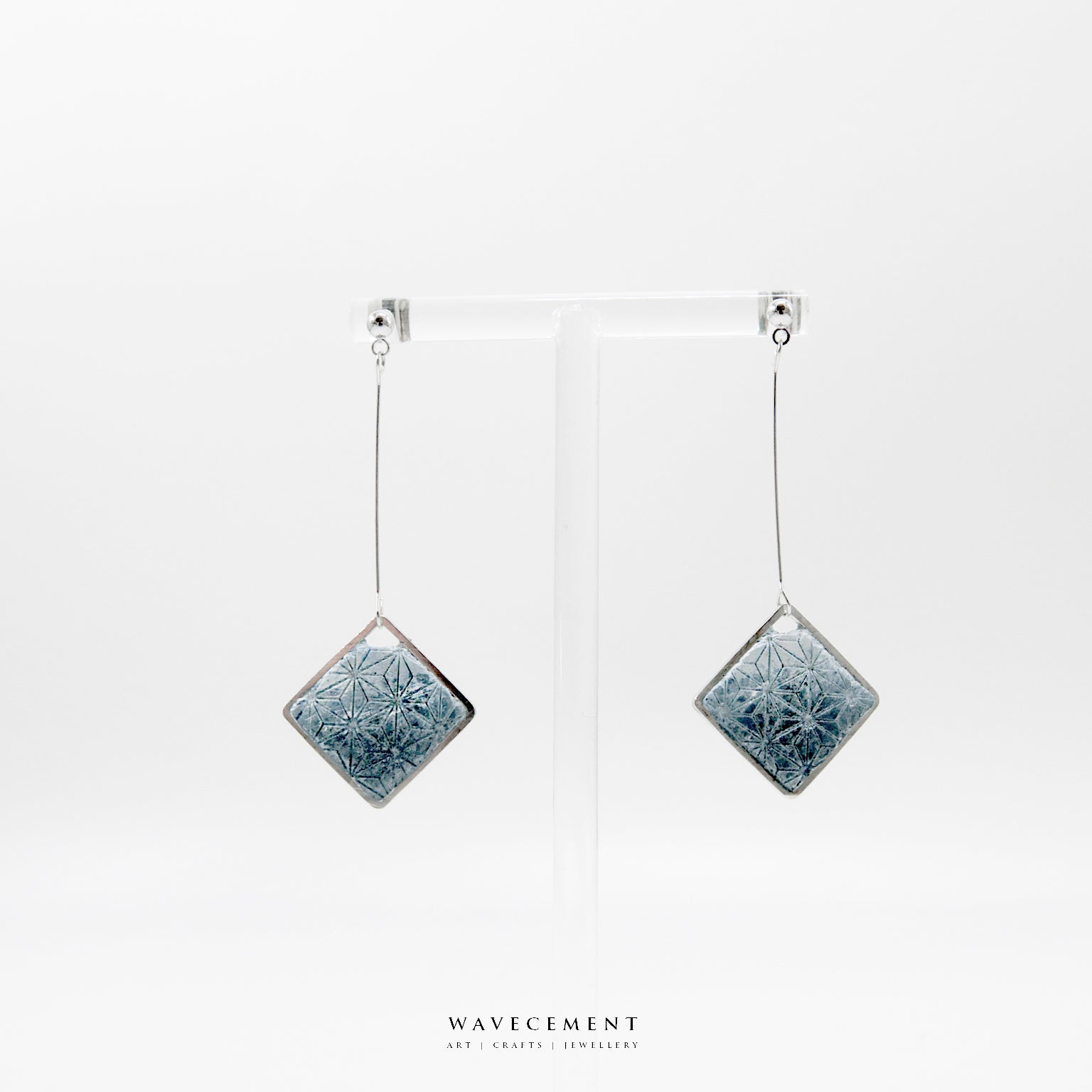 浮世繪系列|染藍日本花紋水泥耳環 Ukiyo-e Series|Blue Japanese Flower Pattern Cement Earring