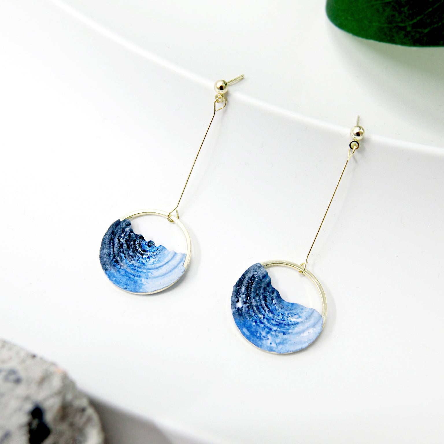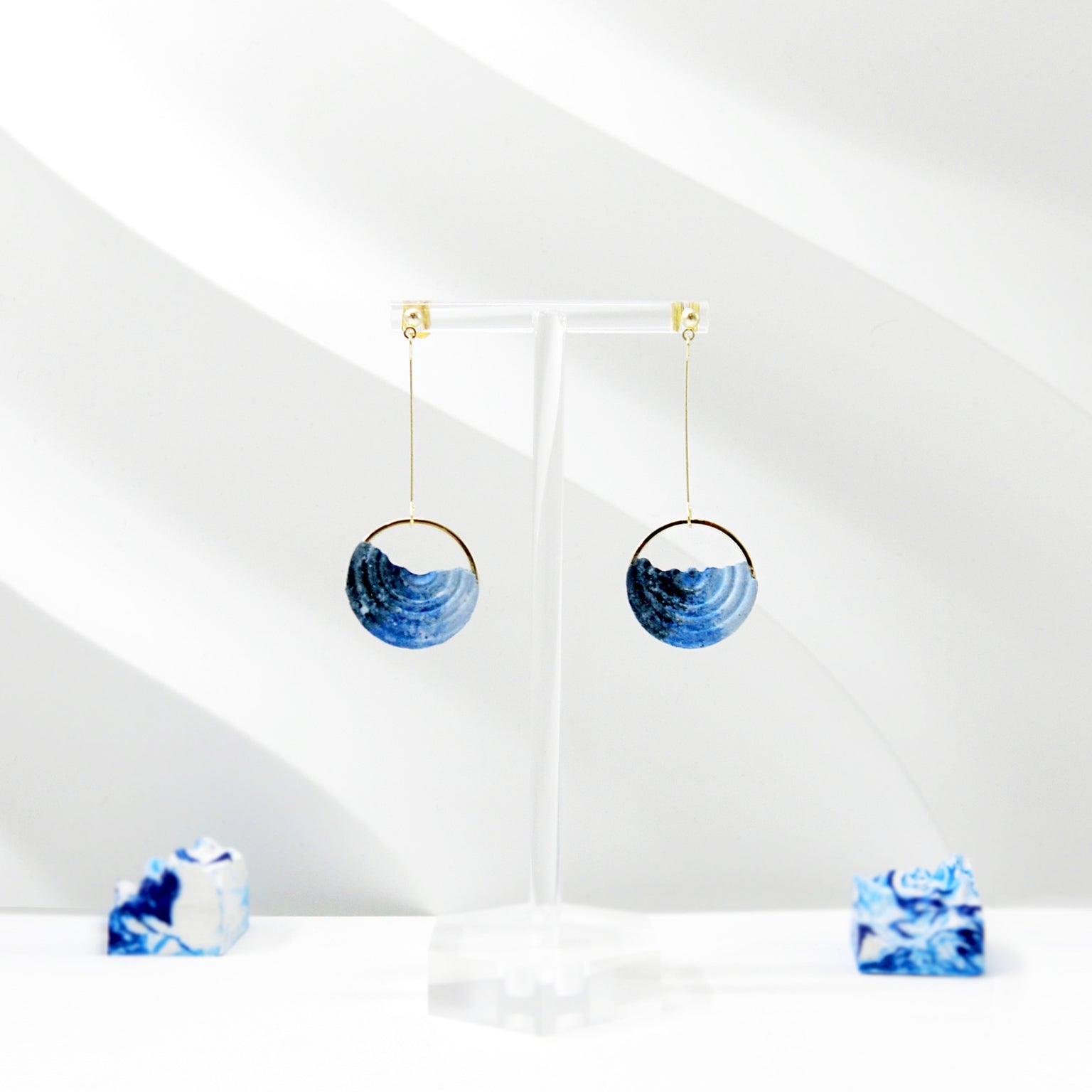 浮世繪系列|染藍海浪水泥耳環 Ukiyo-e Series|The wave circular cement earring