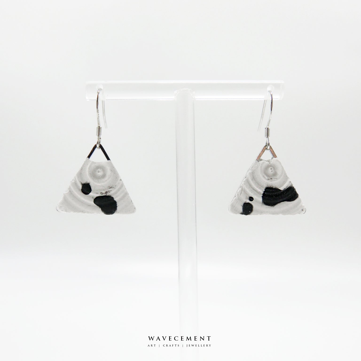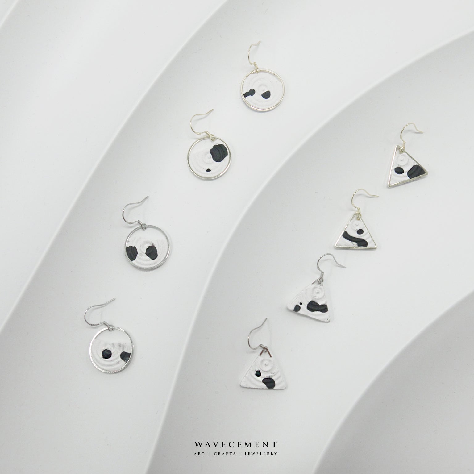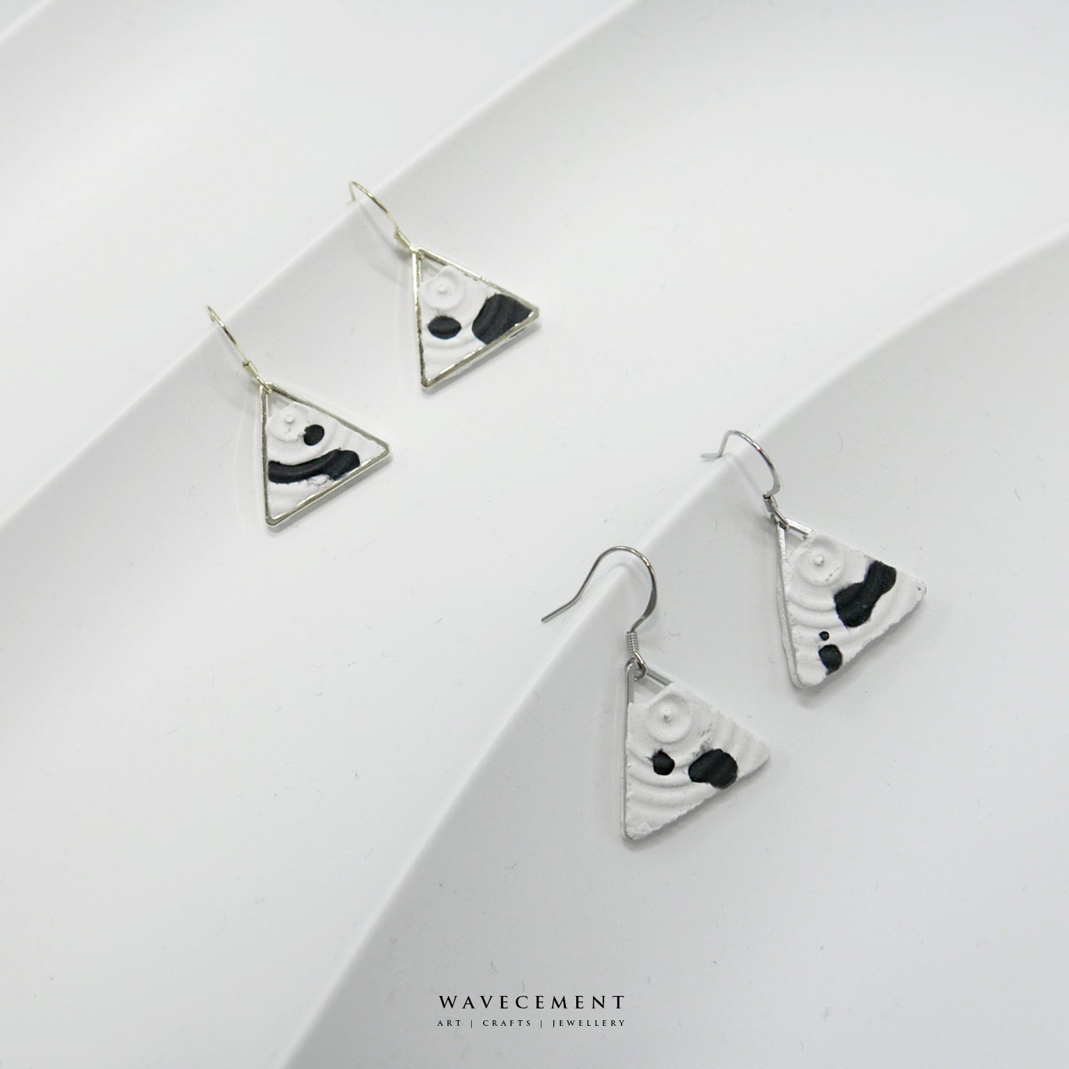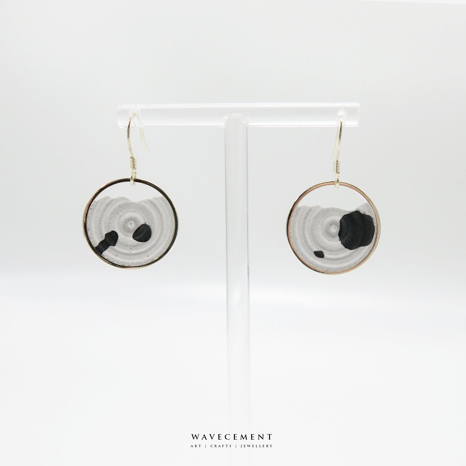 混色水紋系列|潑墨垂吊水泥耳環 Mixed Wave Pattern Series|Black and White Cement Earrings