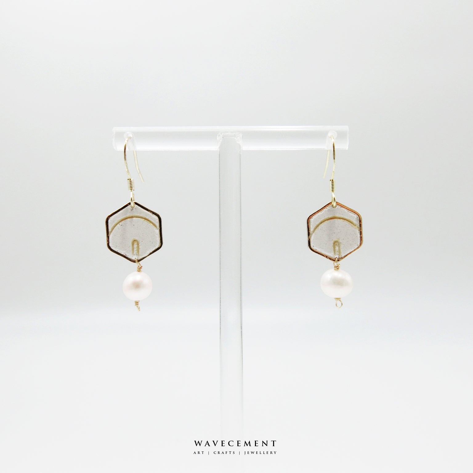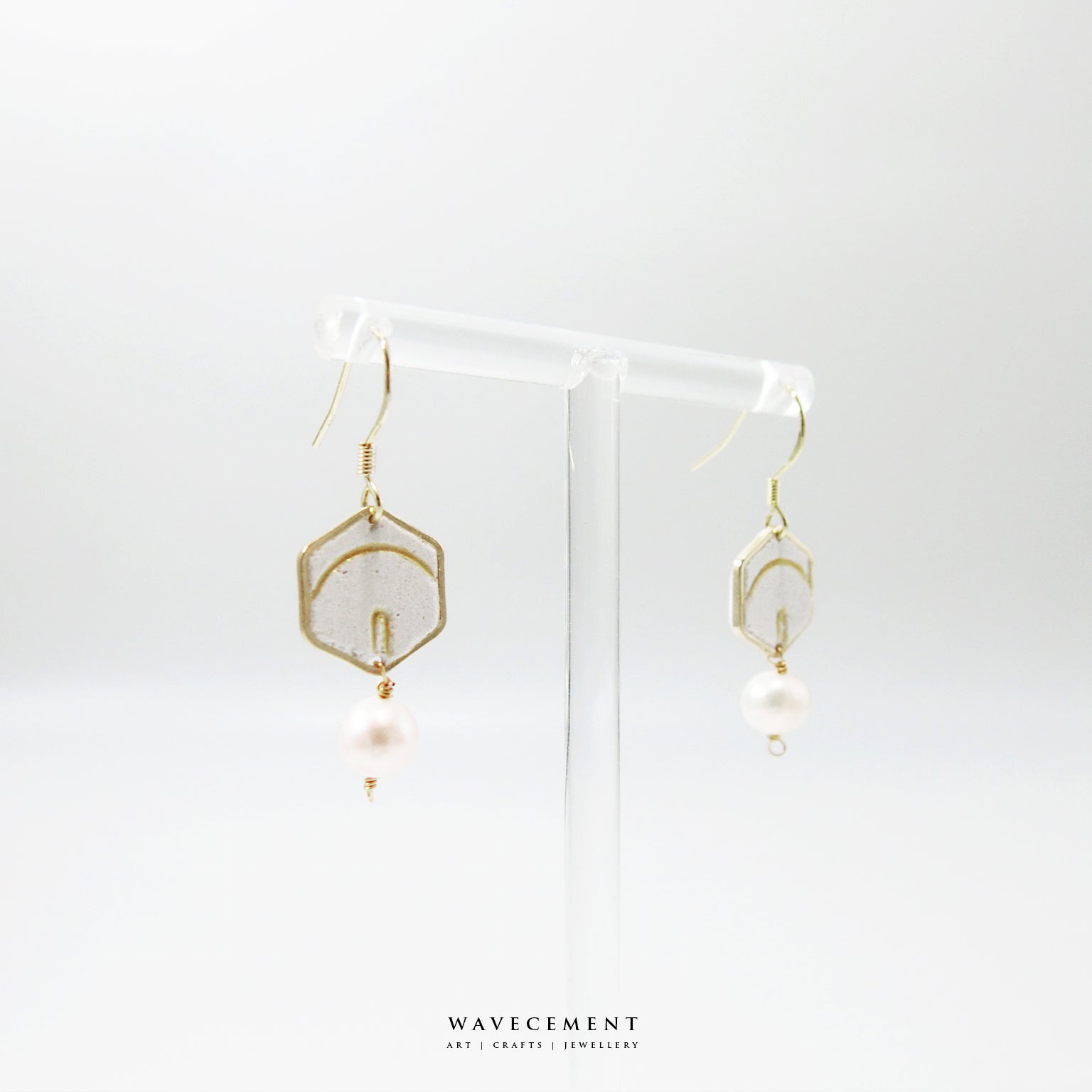 珍珠系列|線條珍珠水泥耳環 Pearl Series|Line Pearl Cement Earrings