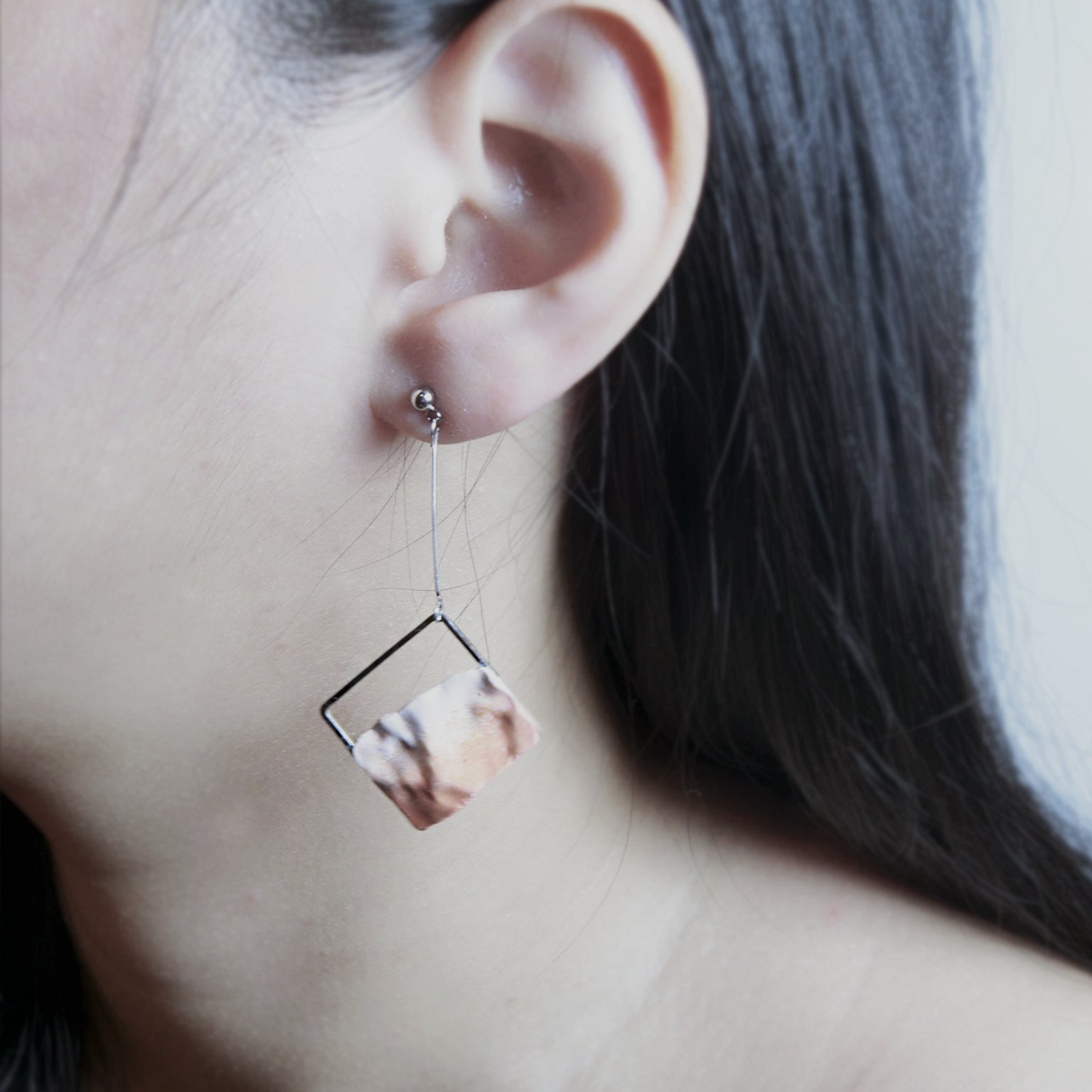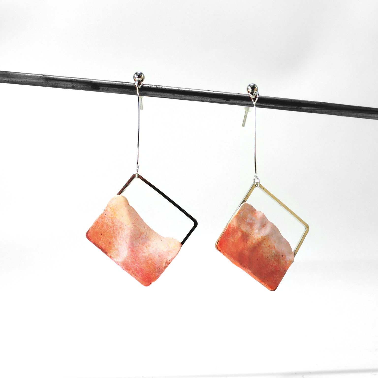 節氣系列|秋分(橘)垂吊水泥耳環 Solar term Series|Autumn Equinox rhombic cement earring