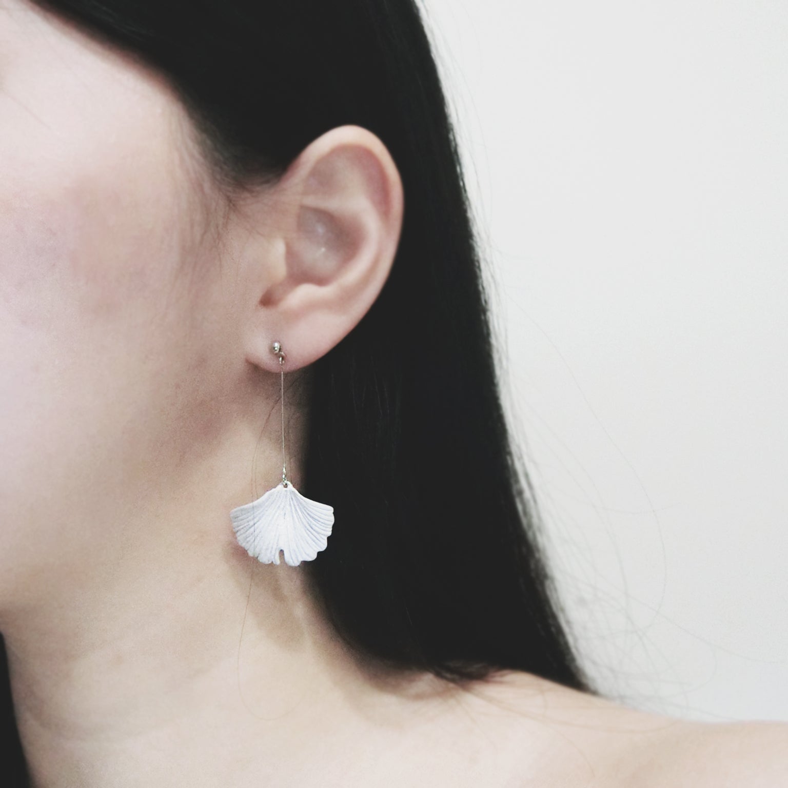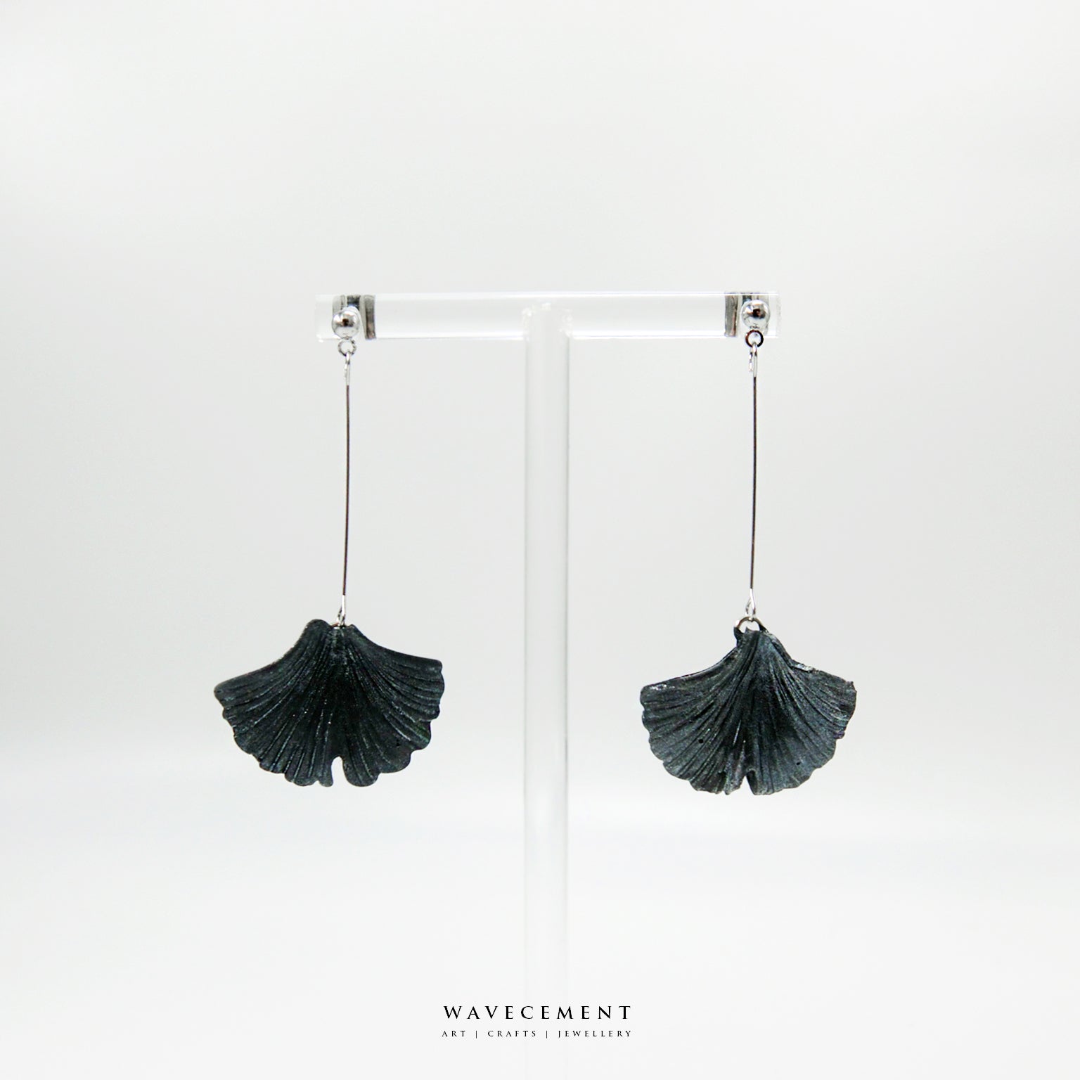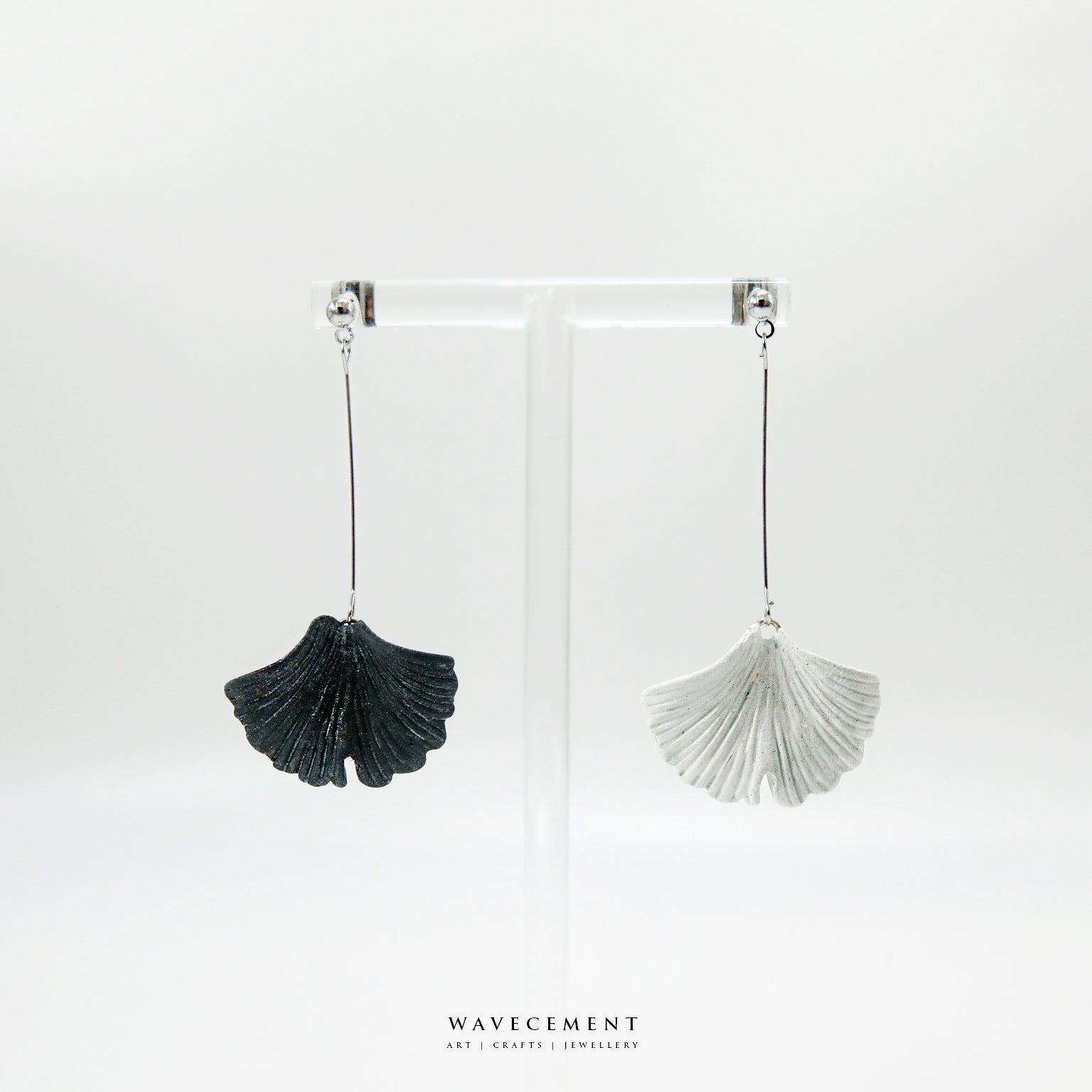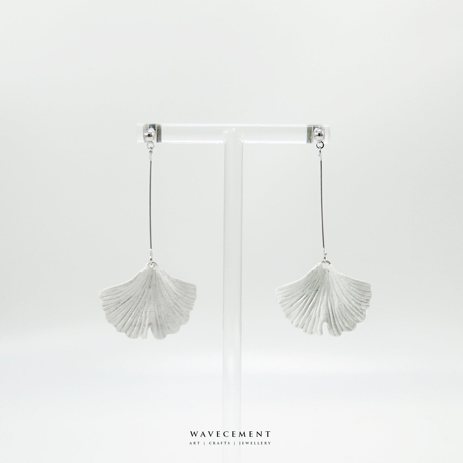 自然系列|銀杏-銀長垂吊水泥耳環 Natural Series|Ginkgo-Silver Long Cement Pendant Earrings